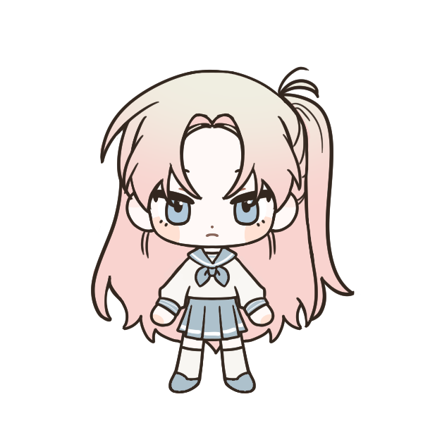 외모 : 벚꽃을 닮은 연분홍색 머리에 약간의 노을빛이 섞여있다. 푸른 눈을 가지고 있으며, 조금 날카로운 인상.